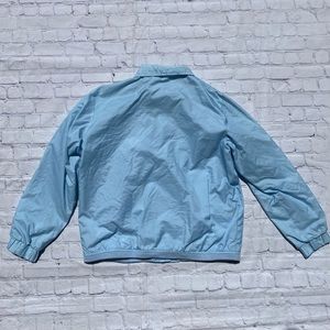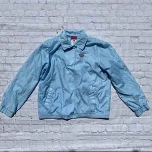 Good condition no tears only one stain on the back shown in photo. Jacket has been washed as well. This is a boy’s size Large and I was able to fit it perfectly and I’m typically a women’s size Large