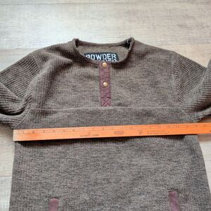 Powder River Men's Jacquard Fleece Pullover M Brown 1/4 Button Up Thick Warm EUC
