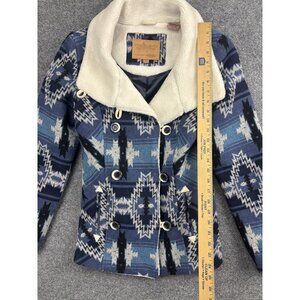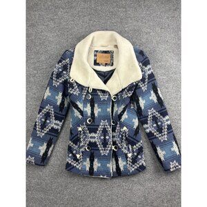 Powder River Outfitters Jacket Womens Small Blue Aztec Sherpa Peacoat W525-2638