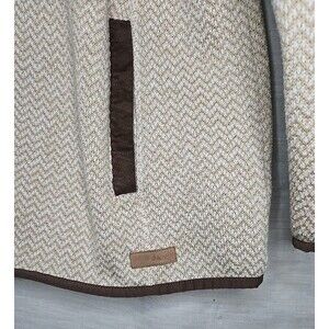 The Powder River Outfitters Quarter-zip Pullover in size Large and khaki color is a stylish and functional piece perfect for casual occasions. Made of polyester fleece fabric, it features a geometric pattern and a high neck design with a zipper accent. This pullover sweater has a Western theme, ideal for outdoor activities like walking and hiking during the winter, fall, and spring seasons. With a regular fit and convenient pockets, this Panhandle brand pullover is a great addition to any man's wardrobe for added warmth and comfort.