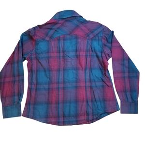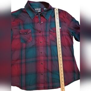 Powder River Outfitters Red Green Plaid Western Snap Workshirt Large