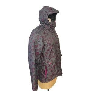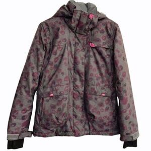 Powder Room Core Gray Red animal Print Hooded Ski Snowboard Jacket Small