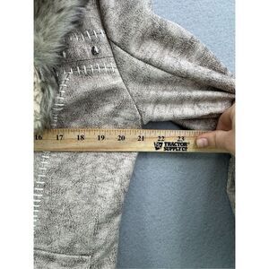 Powder River Outfitters Womens Tan Brown Faux Leather Fur Embellished Jacket Siz