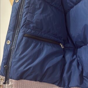 Women’s VINTAGE ski snow winter jacket coat with zipper and buttons. Really thick and really warm. It’s has more of a crop length. Pockets on the inside too! Good condition. Color is gray with a slighttt purple hue, magenta accents, blue inside. Tag says 10 but likely fits a S/M good for older kids too!