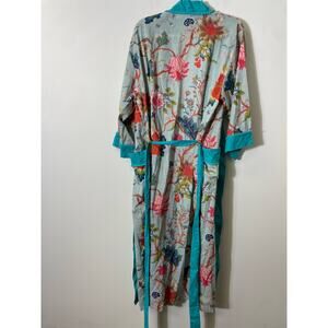 Powell Craft Teal Flloral Cotton Robe Sz OS