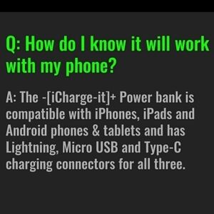 Compatible with iPhone, Android phones, iPad, & tablet and has micro USB & Type-C charging connectors for all.