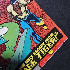 Private Investigators Misty Knight and Colleen Wing have tracked down the stolen jeweled statue, the Jade Tiger, but come face to face with two of the deadliest men alive. Constrictor, the man with the adamantium coils, and Sabretooth, the feral mutant killing machine. Wounded and knowing they've bitten off more than they can chew, Colleen calls in the reinforcements, Luke Cage and Danny Rand, a.k.a. Power Man and Iron Fist...Second appearance of Sabretooth.