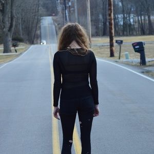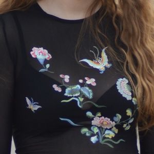 Power Mesh Vintage 90's Butterfly Long Sleeve Top
