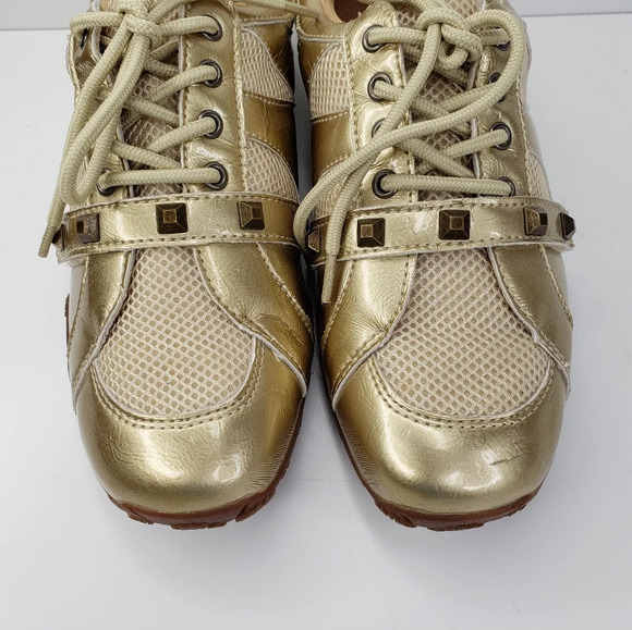 Power Of Essential Jessie Gold Comfort Faux Leather & Mesh Sneakers Sz 9M. Wearing sneakers that are stylish make a fashion statement.