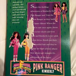 Kimberly, the Pink Power Ranger. Super cute, bought in the 90s, new in the box, slight box damage as this went through an ice storm and a tornado in Oklahoma. If you have any questions, just ask.