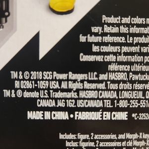 Power Rangers Beast Morphers Yellow Ranger, 6" Action Figure. Two accessories and one Morph X Key. For ages 4 and up.