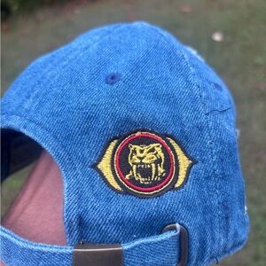 Blue denim cap with Power Rangers logo in yellow. Distressed style for a trendy look.