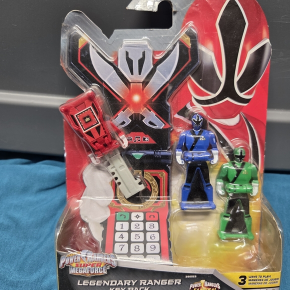 Bandai Power Rangers Super Megaforce Legendary Ranger Red Key Blue/Green Figures. New in packaging. Some edges of the clear plastic are loose from the cardboard because the glue has dried up but they are still factory taped on the back. Cardboard shows some creasing and wear. See photos.