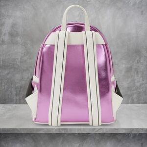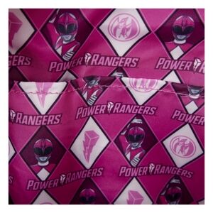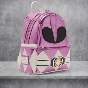 This bag is inspired by the Pink Ranger. Metallic, debossed, and padded applique details bring the uniform of the Pink Ranger to life! You'll even find a molded metal charm of the belt across the front pocket. Take a close look at the straps and find "It's Morphin Time" written along them!