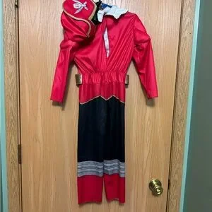 This vibrant kids costume features a striking red and gold design, perfect for imaginative play and dress-up fun.