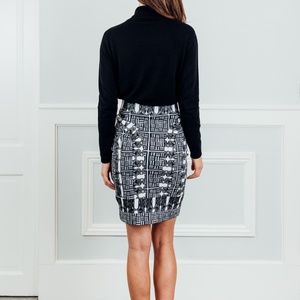 Women's bold print skirt with a strategic contrasting print to enhance your every curve.