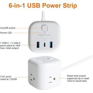 Power Strip Cube with USB C USB A Outlets and 5 Ft Extension Cord Travel