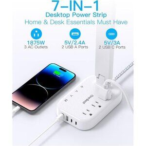 Power Strip with LED Desk Lamp, 3 Outlets 4 USB Ports(2 USBC) 4 Modes 5 Level