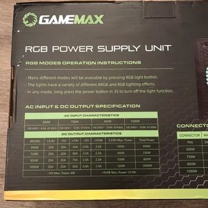 Game Max RGB Version 550 W Modular Power Supply Unit