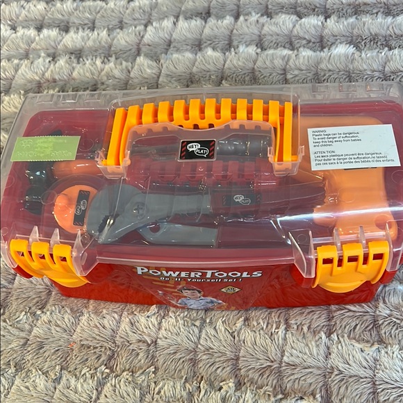 Power Tools toy set in a vibrant orange and red case. Perfect for imaginative play. S