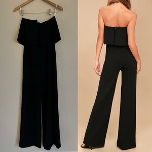 You'll be absolutely irresistible when you're wearing the Lulus Power of Love Black Strapless Jumpsuit! Stretch crepe knit shapes a strapless bodice with a fluttering tier, hidden V-bar, and no-slip strips. A high, fitted waist tops relaxed wide leg pants. Hidden back zipper/hook clasp.