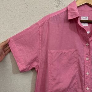 Power of My People POMP The Friend Wayward Fit Shirt Womens L Azalea Pink Linen W11318