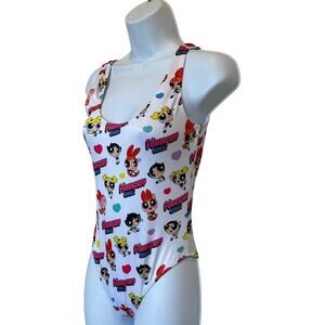 PowerPuff Girls White One Piece Swimsuit SMALL High Cut Cartoon Network Rare