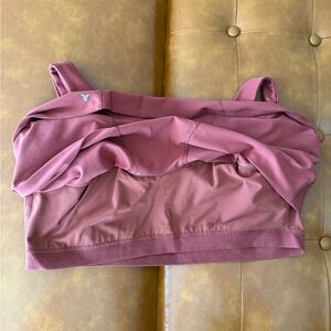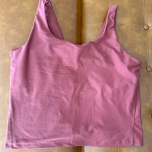 Sleeveless scoop neck tank in a rich rust hue. Smooth, fitted silhouette. Easy to layer or wear on its own. Color is cherry birch, pads are removed.