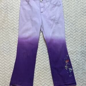 Purple ombré tie-dyed flare denim with Powerpuff Girl embroidered designer. Size 6x