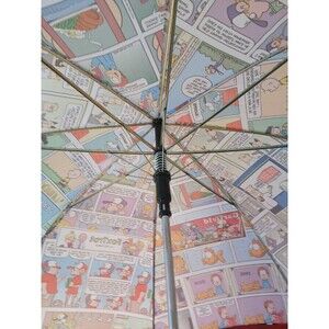 This rare Ppi Peanuts Comic Strip Character Umbrella is a unique accessory featuring cartoon characters like Snoopy, Peanut, and Garfield. With a 33-inch wood handle and nylon material, this multicolor umbrella is perfect for fans of cartoons and comic strips. The automatic feature adds convenience, making it a practical yet playful addition to any umbrella collection. The strap accent adds a stylish touch to this classic style umbrella, making it a must-have for any unisex user looking to add a touch of fun to their rainy day essentials. New, never used, opened to take photos.