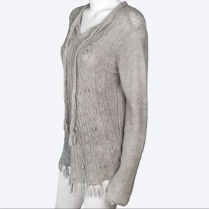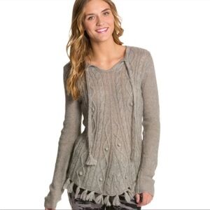 PrANa Gray Fog Shelby Poncho Sweater With Fringe Sz M EUC