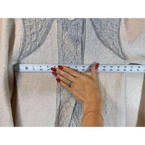 This cardigan has a nice long length to it, beautiful cream and grey knit and some chunky buttons down the front.