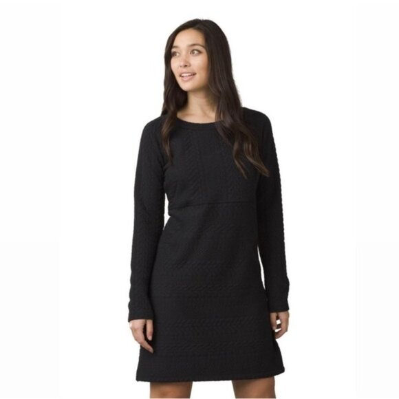 PrAna Black Jacquard Macee Knit Quilted Long Sleeve Dress