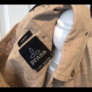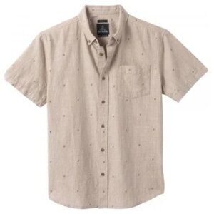 Discover the PrAna Button Collar Sparrow Bermuda Chambray Short Sleeve Shirt in XL Slim Fit. This stylish shirt in earthy brown and tan hues is brand new with tags.