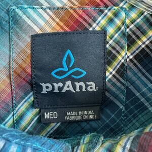 This men’s medium size Prana button front short sleeve plaid shirt is in excellent condition with no stains or other blemishes.