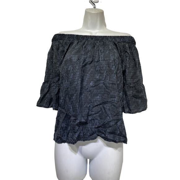 PrAna Chryssa Black blue off the shoulder Top blouse Size S