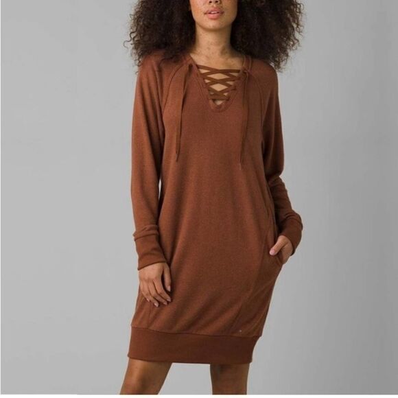PrAna Cozy Up Terry Dress Raux Heather Lace-up V-Neck Lounge NWT. XS