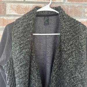 Womens size small PrAna Demure Cardigan. Charcoal gray, waterfall flowy cardigan. Cotton base with wool blend knit panels in the front. Excellent condition!