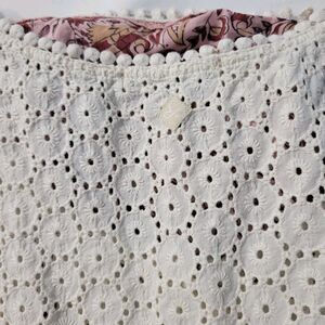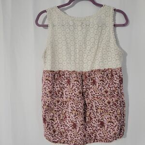 PrAna Effie Eyelet Crochet Tank Top M, Pink Ivory Bird & Butterfly Print EUC