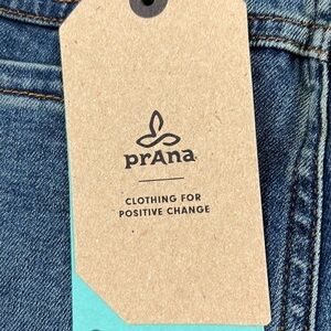 PrAna slim leg true blue jeans in size US 6/28. Sustainable and comfortable of 86% organic cotton, 13% polyester and 1% spandex machine, wash cold water with like ColorShare