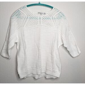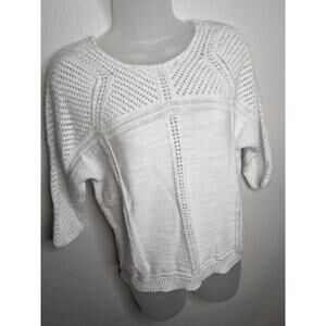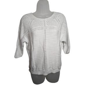 PrAna Getup Beach Top 100% Organic Cotton Womans XS White Chunky Knit 3/4 Summer