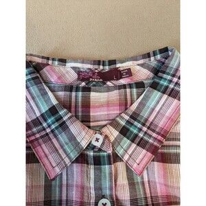 PrAna Gina Bora Bay Plaid Long Sleeve Top Organic Cotton- Size Large