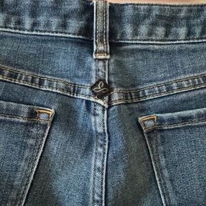 Stylish indigo denim jeans by Prana. Features intricate button design. Ideal for everyday wear.