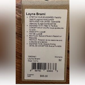PrAna Layna Brami Sage Camo Bra Sz M NWT