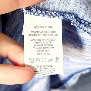 PrAna Living Demi hooded athletic top in Blue Jay (a heathered blue). Size XS. V-neck with faux wrap. Hood. Thumbholes at wrists. Front pockets. Pre-owned, excellent condition- there is writing on interior care tag.