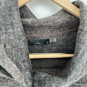 Good used condition. This item is preowned. Please check the photos closely for details on measurements and condition. Elevate your winter and fall wardrobe with this stylish and cozy PrAna M Nenah Sweater. The striped pattern and cowl neck add a touch of classic elegance, while the oversized and asymmetrical design gives it a boho vibe. Made of a comfortable blend of polyester, alpaca, wool, and acrylic, this sweater is perfect for travel, casual outings, or workwear.
