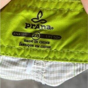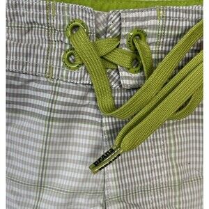 PrAna Men’s Drawstring Plaid Board Shorts Size 28 Green UPF 50+ Surf Swim Beach