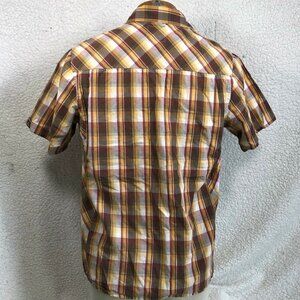PrAna Mens Organic Cotton Plaid Snap Button Down Shirt Short Sleeve size Small