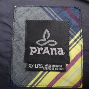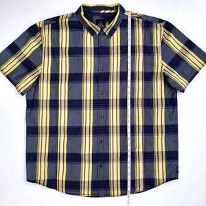 PrAna (Mens Size XXL 2XL) Short Sleeve Button Front Shirt Black Yellow Plaid