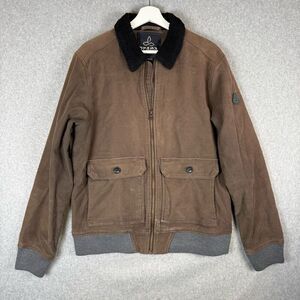 PrAna Mens Size Medium Full Zip Front Organic Cotton Bomber Jacket Brown Pockets